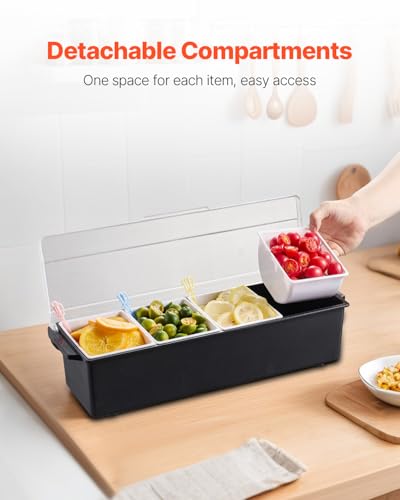 VEVOR Chilled Condiment Server, 4 Compartment Ice Cooled Condiment Serving Container, Chilled Garnish Tray Bar Caddy with Lid, for Bartending & Serving Taco, Salad, Fruit, Home & Restaurant Supplies