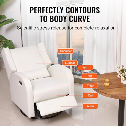 VEVOR Electronic Power Recliner and Swivel Glider, 250 lbs Weight Capacity Swivel Glider Recliner Chair with USB Port, Polyester Surface Swivel Rocker Recliner for Living Room, Bedroom, Off White