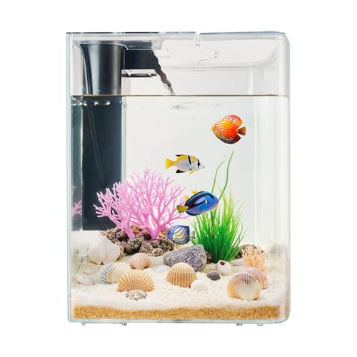 VEVOR Fish Tank Aquarium, 2 Gallon Arch Ultra-Clear GPPS Starter Smart Tank Adjustable 3 Color Lighting, Self Cleaning System Fishbowl for Freshwater & Saltwater Fish Home, Office, or Pet Use