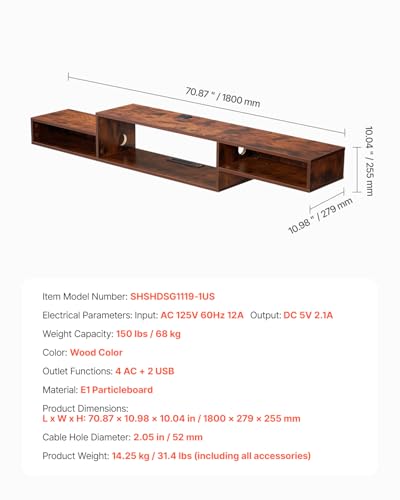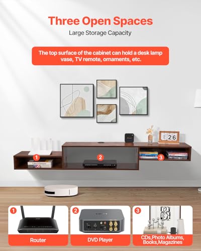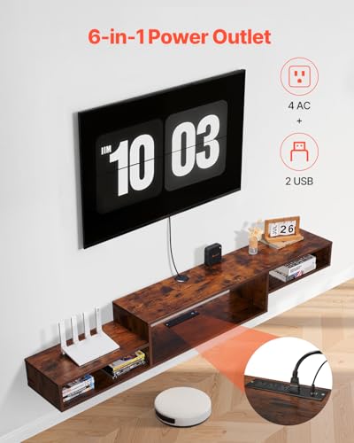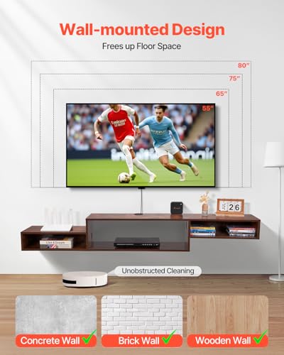 VEVOR Floating TV Stand, 70" Wall Mount Entertainment Center with Power Outlet & Cable Hole, Modern Floating TV Shelf with Storage Cabinet for DVD Player, Cable Box, Game Console, TV Accessory, Wood