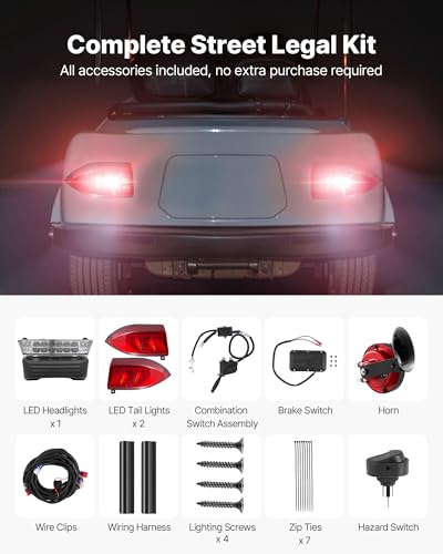 VEVOR Golf Cart Light Kit, 12V, Street Legal LED Headlight and Taillight Kit with Wiring Harness, Turn Signals, Hazard Light, Switch Horn, Brake Pad, ABS Housing, for Club Car Precedent 2004-2008