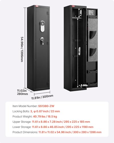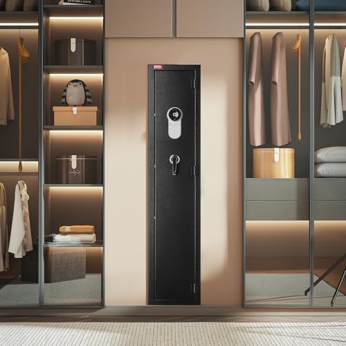 VEVOR Gun Safe, Heavy Duty Cold-Rolled Steel Fireproof Rifle Cabinet with Fingerprint, Digital Keypad & Key, Large Long Gun Cabinet with Magazine and LED, Adjustable Racks for Rifles, Pistols, Shotgun
