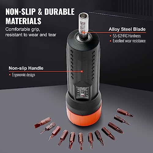 VEVOR ¼ in. Drive Torque Screwdriver Set : 10-70 in-lbs. Torque Adjustment Range : 1 in-lb. Increment Torque Screwdriver,