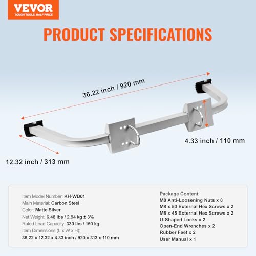 VEVOR Ladder Stabilizer, Extension Ladder Standoff, Heavy Duty Wing Span/Wall Ladder Accessories for Roof Gutter, Easy to Use & Wide Adaptability & Anti-slip Rubber Feet, 330 lbs Weight Rating