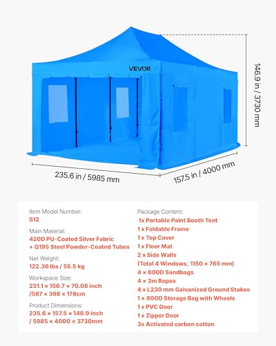 VEVOR Portable Paint Booth Tent, 231.1 x 156.7 x 70.08 inch Portable Garage Spray Tent, Waterproof Spray Booth with Foldable Frame Design & 4 Mesh Side Windows for Auto Parts, Furniture, Car Painting