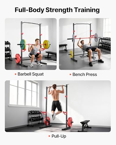 VEVOR Power Cage Squat Rack, Multifunctional Power Rack Home Gym, 1000LBS Strength Training Workout Equipment with 4 Band Pegs, Adjustable J-Hooks & Safety Bars for Barbell Squat Bench Press Pull-Up