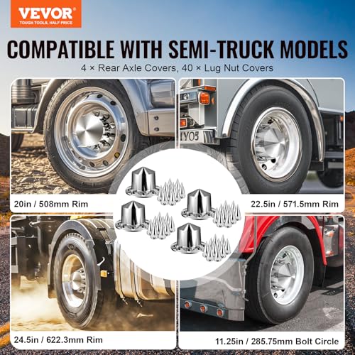 VEVOR Rear Axle Wheel Covers, Spiked Axle Cover for Semi Truck, ABS Electroplate Rust-Resistant Lug Nut Covers, Universal Fit, Installation Tool Included, Complete Axle Cover Combo Kit