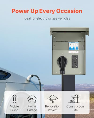 VEVOR Temporary Power Outlet Panel, 20 50 Amp, RV EV Electrical Outlet Panel with NEMA 50 Amp GFCI 20 Amp Receptacle Installed, Pre-Wired IP54 Weatherproof Box, for RV Camper Car Travel Motorhome