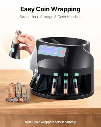 VEVOR USD Coin Counter & Coin Sorters with LCD Display, Coin Sorter Machine for USD Coin 1¢ 5¢ 10¢ 25¢ $1, Sorts up to 300 Coins/min, Change Counter Holds 2000 Coins Included 5 Coin Bins & 5 Tubes