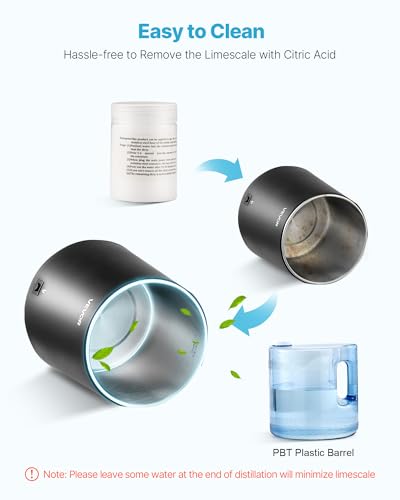 VEVOR Water Distiller, 6L 1.6 Gallon Larger Pure Water Purifier Filter For Home Table Countertop, 900W Plastic Distilled Maker, Stainless Steel Interior Drinking Machine to Make Clean Waters, Black