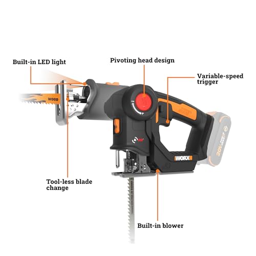 WORX - WX550L.9 20V Power Share Axis Cordless Reciprocating & Jig Saw - Tool Only - Black