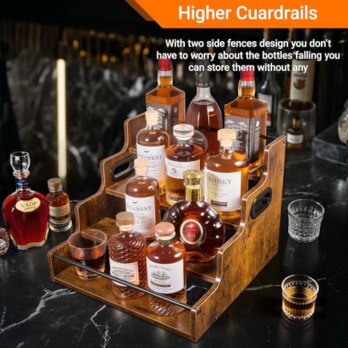 YQBRAO 4-Tier Liquor Bottle Display Shelf, Coffee Syrup Rack Organizer, Water Bottle Organizer, Mini Bar Cabinet, Rustic Bar Shelves for Liquor Whiskey, Spirits