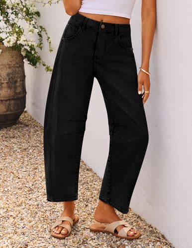 ZISICA Womens Barrel Jeans for Women Trendy 2026 High Waisted Wide Leg Stretchy Baggy Ankle Denim Pants with Pockets,Black,Medium